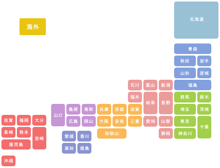 日本地図の都道府県をクリックしていただくと簡単に検索することができます。どうぞご利用ください。